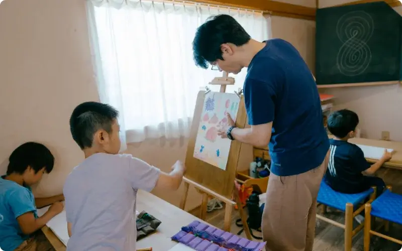 0歳〜未就園児を対象とした親子クラス、3〜5歳までを対象とした幼稚部、小学1年~中学3年を対象とした初中等部があります。